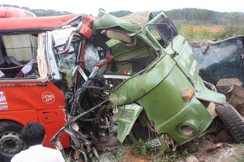 Vụ tai nạn xảy ra tại vị trí thuộc xã Đạ Sar (huyện Lạc Dương, Lâm Đồng) cách thành phố Đà Lạt khoảng 30km. Tại hiện trường, hai chiếc xe bị hư hỏng nặng, đầu xe tải và xe khách bị móp méo, kính bể nát, bánh xe văng ra ngoài…
