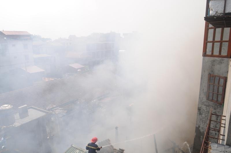 Hiện trường vụ cháy (Ảnh: P.Hải) ![]() Cháy mù mịt một góc phố (Ảnh: Anh Tuấn) (Ảnh: Phạm Hải) ![]() |