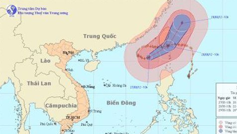 mỗi giờ đi được khoảng 10 - 15km. Đến 10 giờ ngày 28/8, vị trí tâm bão ở vào