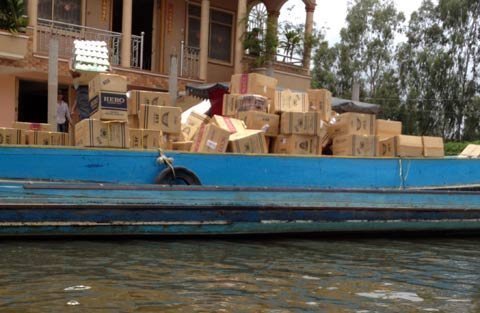| Thuốc lá ngoại vận chuyển công khai trên cánh đồng xã Vĩnh Ngươn và Vĩnh Tế (TX. Châu Đốc). |
