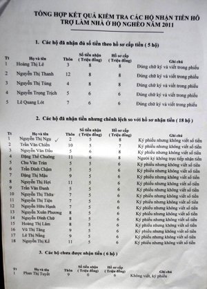 Sau khi tiến hành kiểm tra, đối chiếu với danh sách từ MTTQ huyện, UBKT Đảng ủy đã phát hiện sai phạm của bà Đảm trong việc chi trả tiền hỗ trợ cho hộ nghèo.