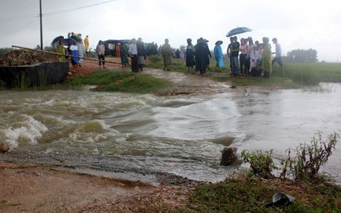 Tuy nhiên, do nước chảy quá mạnh băng qua cả mặt cầu tạm nên chăng may Vũ và chiếc xe đạp bị cuốn theo dòng nước xiết.