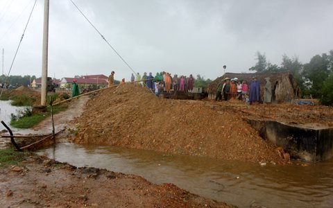 | Mặc dù mưa lớn, nước chảy xiết nhưng công trình không có cảnh báo nguy