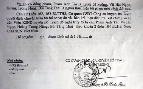Thế nhưng, Viện KSND huyện Bố Trạch lại ra quyết định số 06 ngày 03/7/2012 và