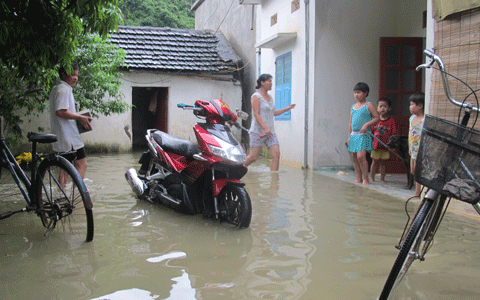 Mưa ngập QL1. đoạn Thị xã Tam Điệp, nhà dân cũng chung số phận.