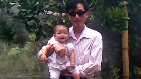 | Anh Nguyễn Huy Việt hạnh phúc bên con nhỏ. |