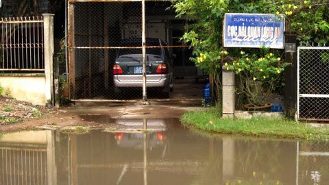 | Ngập nước ngay trước cổng Hải quan Long An. |