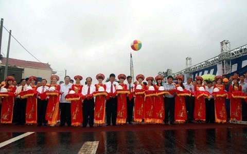 | Chủ tịch Quốc hội Nguyễn Sinh Hùng cùng lãnh đạo Bộ GTVT và hai tỉnh Nghệ An, Hà Tỉnh cắt băng khánh thành cầu Bến Thủy 2. |