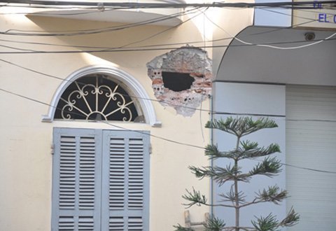 | Tường bên phải của ngôi nhà bị thủng 1 lỗ lớn (Ảnh: Lao động) |