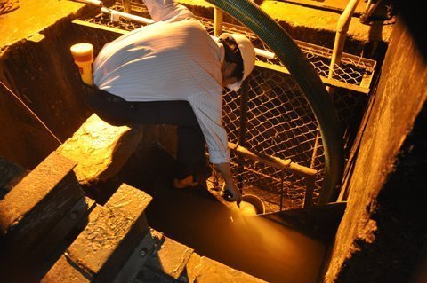 | Công nhân đang làm vệ sinh trong đường hầm con đập chính Sông Tranh 2 |