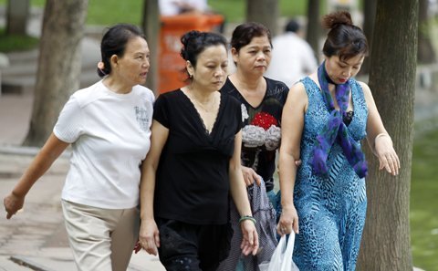 | Các mẹ, các chị đi tập thể dục với trang phục se lạnh |