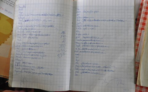 | Cuốn sổ ghi chép của chủ chứa ghi số lượt đi khách của các cô gái |