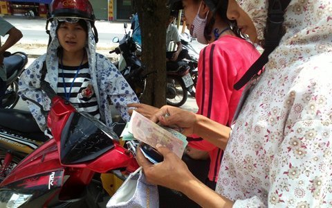 Cho đến gần khuya vẫn có người giao dịch. Đặc biệt vào tầm 17h người dân và công nhân đứng kín mít trước cổng ngân hàng. Nhiều người mang theo con nhỏ, người mang bầu cũng không được ưu ái vào trước.