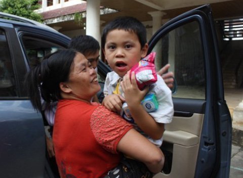 | Niềm vui của chị Bế Thị Hường khi con được giải cứu. |