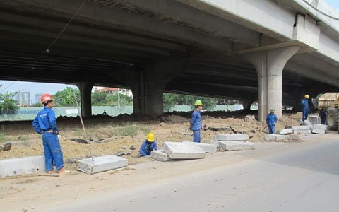 ![]() Phía dưới chân cầu cạn đang được các công nhân gấp rút hoàn thành. |