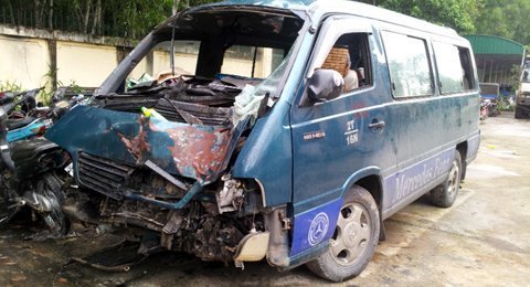 Thời điểm trên, chiếc ô tô BKS 53M-1570 do tài xế Nguyễn Thái Hùng (26 tuổi, quê Nghệ An) điều khiển đang chở đoàn rước dâu từ Tiền Giang về TP.Vũng Tàu,