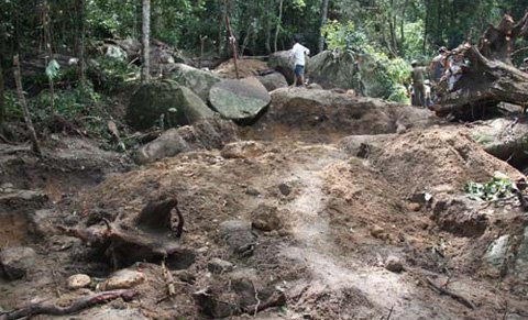đường kính 30-50cm cũng bị đốn hạ, đất đá bị xới tung như bãi chiến trường…