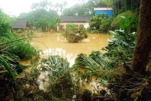 Lũ đã tràn vào nhà ở, cuốn trôi đồ đạc, tài sản; làm vỡ ao cá, gây ngập úng khoảng 8ha hoa màu, cây ăn quả của ba hộ dân thuộc phường Nam Cường, TP Lào Cai.