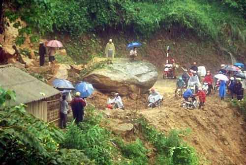 Hạt bảo dưỡng đường bộ Sa Pa phải cầu cứu Công ty TNHH quản lý và sửa chữa đường bộ Lào Cai khẩn cấp đưa máy khoan và thuốc nổ vào hiện trường để nổ mìn phá tảng đá khổng lồ này.