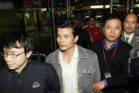 | Thủy thủ Hùng (thứ 2 từ trái sang) sống sót trở về. Ảnh: Hồng Vĩnh. |