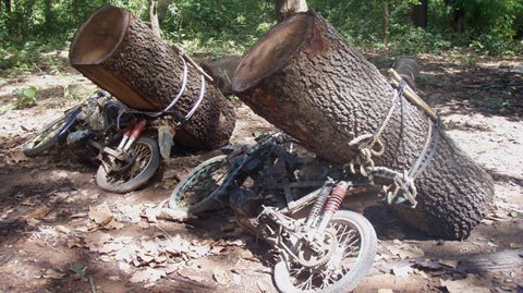 Trong khi đưa tám phách gỗ ra bến sông thì một xe đạp thồ của nhóm lâm tặc bị