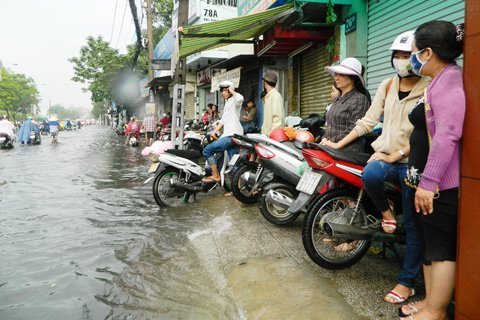 Còn theo người dân nơi đây, mỗi khi mưa lớn là nước tràn vào nhà, họ phải “sống chung với lũ” ngay chính căn nhà mình. Trong khi đó, mỗi dịp ngập đường, các cửa hàng sửa xe gắn máy bên đường “trúng lớn” vì phải liên tục làm việc.