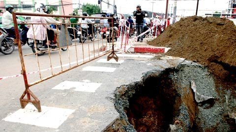 Hiện “hố tử thần” đã được cơ quan chức năng điều động các xe cuốc đến múc lớp đá, cát ra khỏi hố nhằm chuẩn bị vá lại đoạn cống bị bể sau đó khắc phục mặt đường bị hư hỏng trong chiều nay.