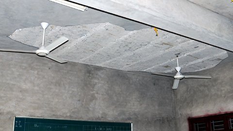 Hiện trường vụ sập trần lớp học khiến 4 cô trò nhập viện- ảnh Anh Tuấn