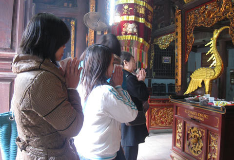 Để bình tâm vượt qua Valentine, nhiều người độc thân thích đi lễ chùa Hà - ngôi chùa cầu duyên nổi tiếng nhất Hà Nội vào ngày này. Người đến lễ đông nhất vẫn là các cô gái trẻ.