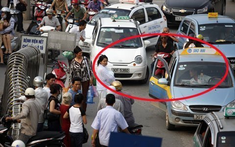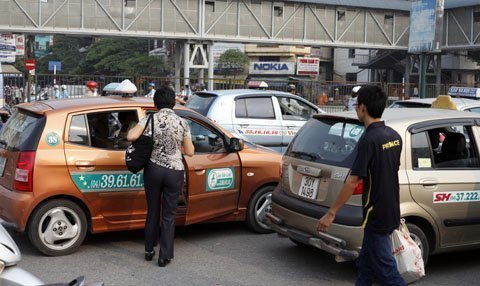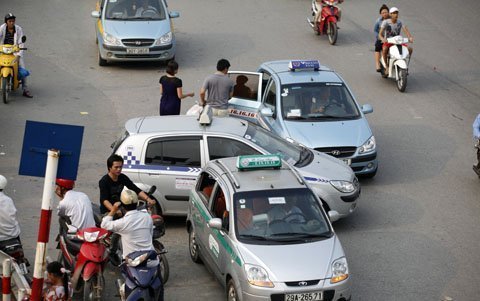 | Một chiếc taxi còn đỗ ngang đường để bắt khác |