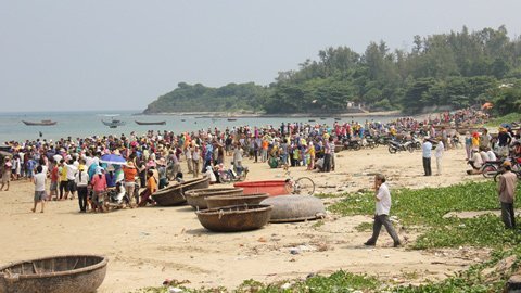 | Đám đông hiếu kỳ đang đứng xem tại khu vực con tàu đắm |