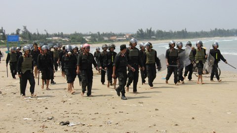 Tuy nhiên, lợi dụng sự việc trên, một số đối tượng xấu, quá khích ở địa phương đã kích động những người dân đang đứng xem trên bãi biển giải vây cho người bị bắt; đồng thời lấy đá ném khiến ít nhất 5 cán bộ, chiến sỹ bị thương và lật đổ chiếc xe ô tô của cảnh sát đang đậu trên bãi biển. Sau đó hàng chục đối tượng khác đã ào ra biển để lặn lấy cổ vật.