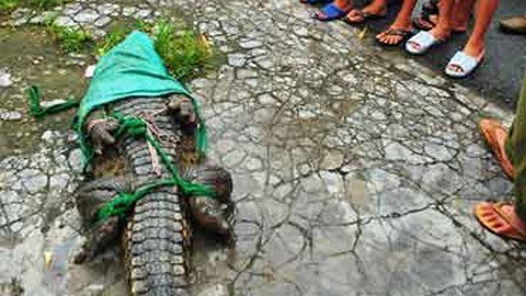 | Cá sấu sổng chuồng bị bắt lại. (Ảnh: VietNamNet) |
