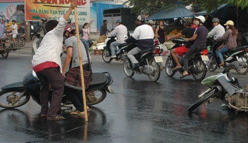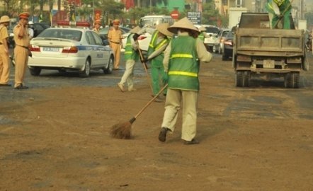 | Biện pháp xử lý tạm thời để tránh trơn trượt cho người đi đường. |