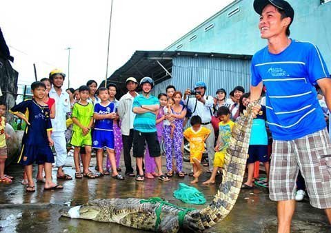 Cũng theo ông Dũng, từ thời điểm xảy ra sự cố cá sấu sổng chuồng, người dân đã bắt được 2 con và Công ty Quốc Việt phải chuộc mỗi con 3 triệu đồng. Thấy việc công ty trả tiền chuộc “hậu hĩnh”, rất nhiều người bất chấp nguy hiểm đối mặt với “tử thần” đã đổ xô đi bắt cá.