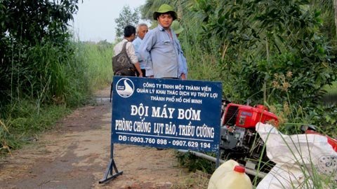 Đứng cạnh máy bơm hút nước trên đoạn đường mà ống bơm nước đi qua ngang, ông Lê Anh Tuấn, đại diện công ty quản lý, khai thác dịnh vụ đường thủy Thủ Đức cho biết cả đêm nay và ngày hôm sau sẽ mắc võng túc trực tại đây. “Nếu tình hình xấu hơn, chúng tôi sẽ huy động thêm máy bơm hút nước giảm ngập”, ông Tuấn nói.