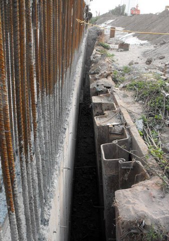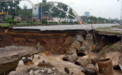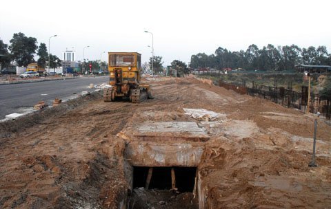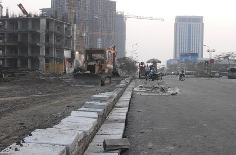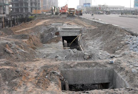 ![]() Suốt 2 tháng qua, các đơn vị thi công khắc phục “hố tử thần” đã thi công ngày đêm, phần tiếp giáp giữa đường với các công trình 2 bên đường được kè bằng sắt |