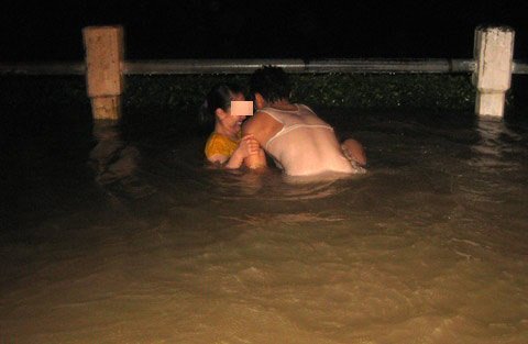 nhau ra công viên đùa giỡn và 'quấn quýt' dưới con nước triều cường.