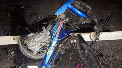 Cú va chạm khiến chiếc xe máy gần như vỡ vụn, phần máy rời khỏi thân xe, một vài bộ phận chiếc xe bay sang dải phân cách, sang tận làn đường bên.