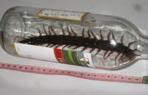 Con rết to bằng ngón tay cái người lớn có chiều dài toàn thân là 24cm, nếu tính cả 2 bộ phận đuôi và râu trên đầu dài đến 27cm. Hiện con rết đang được nhốt trong một cái chai, để tại sân nhà anh Mai Văn Tuyên.