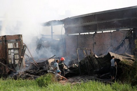 Toàn bộ mái nhà kho, nhà xưởng rộng 2.000m2 đã bị đổ sập chôn vùi bên trong nhiều thiết bị máy móc. Đến 9h sáng, đám cháy được dập tắt nhưng công tác chữa cháy vẫn tiếp tục để đề phòng tái phát.