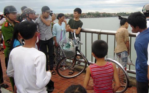 - Chưa rõ nguyên nhân gì, một nam sinh đi xe đạp lên cầu Nhật Lệ (Quảng Bình) rồi gieo mình xuống dòng nước xiết trong sự bất lực của một số người đi đường.