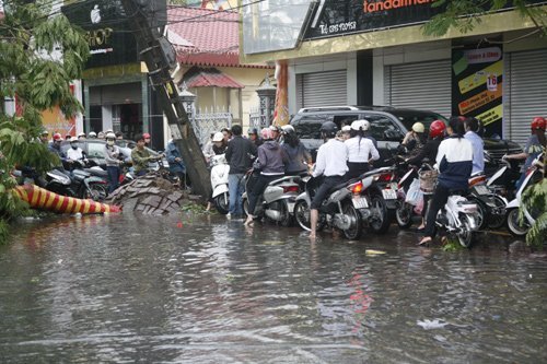 Bão số 8 làm cây đổ, đường ngập tại Hải Phòng |