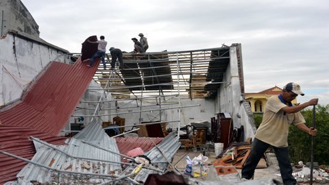 | Người dân đang khẩn trương khắc phục hậu quả sau bão |