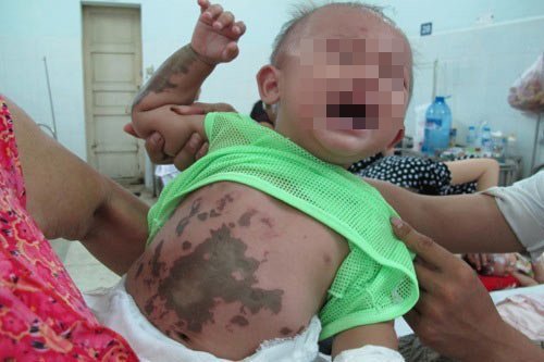 | Cháu Huỳnh Tuấn Bảo bị nhiều vết bỏng axít trên người |