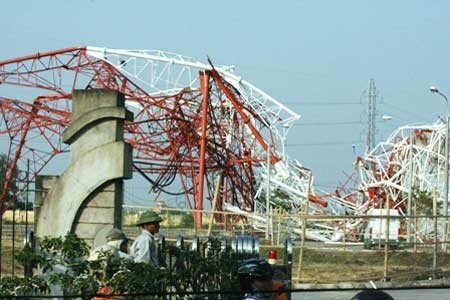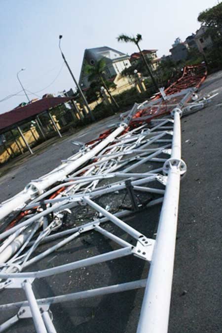 >> Cận cảnh tháp truyền hình bị bão đánh sập