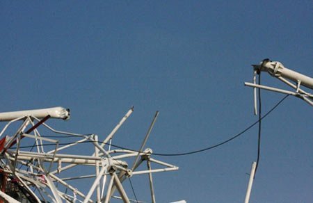 | Những vết đứt gãy của tháp truyền hình khi bị đổ sập. |