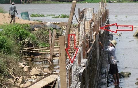 | Mặc dù sắt thép hoen rỉ, đơn vị thi công vẫn đổ bê tông |