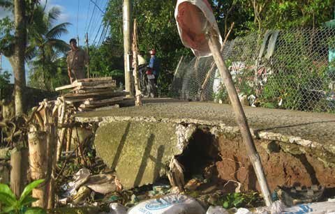 | Nhiều đoạn đường ven bờ kè bị sạt lở đặc biệt nghiêm trọng. |