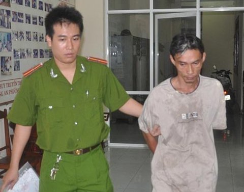 | Nguyễn Công Tâm, kẻ đổ xăng đốt vợ bị công an bắt giữ. (Ảnh: Ánh Dương) |